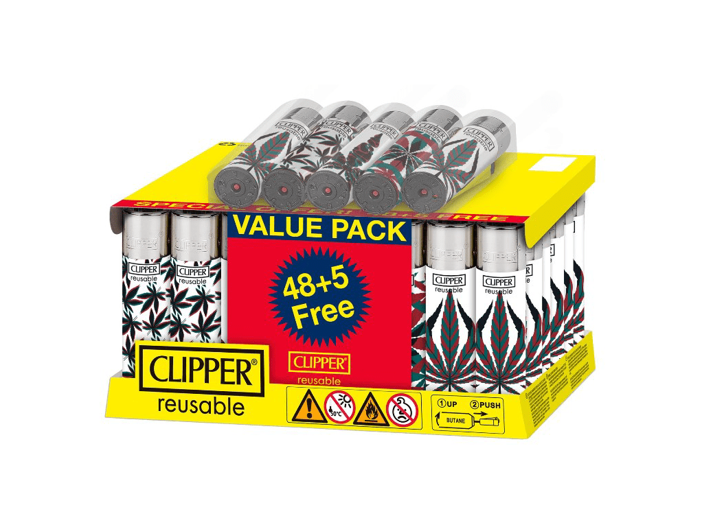 Clipper Lighters Marijuana Leaves 48/tray + 5 Free