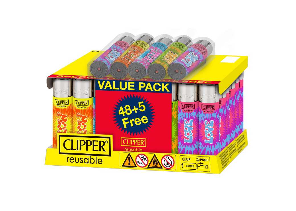 Clipper Lighters Tie Dye 48/tray + 5 Free