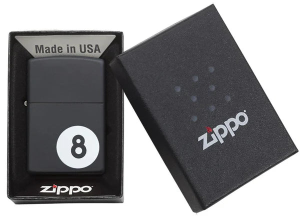 Don't be afraid to put this 8-ball into the pocket. Slide this black matte 8-ball windproof lighter into your pocket or display its sleek design. The lighter black matte finish gives it a smooth look and feel and is representative of the black 8-ball of a billiards game. Comes packaged in a gift box. For optimal performance, fill with Zippo lighter fuel.